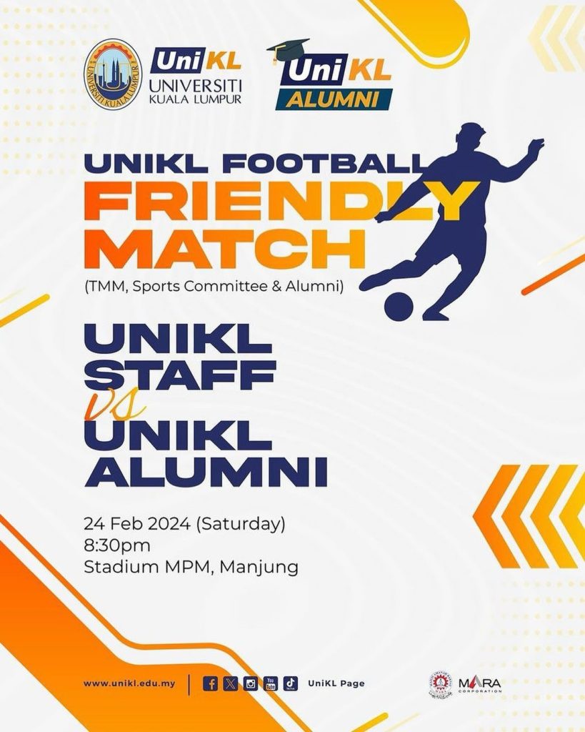 Don’t miss the opportunity to watch this friendly match between UniKL Staff/Management Members vs our very own UniKL Alumni ![]()